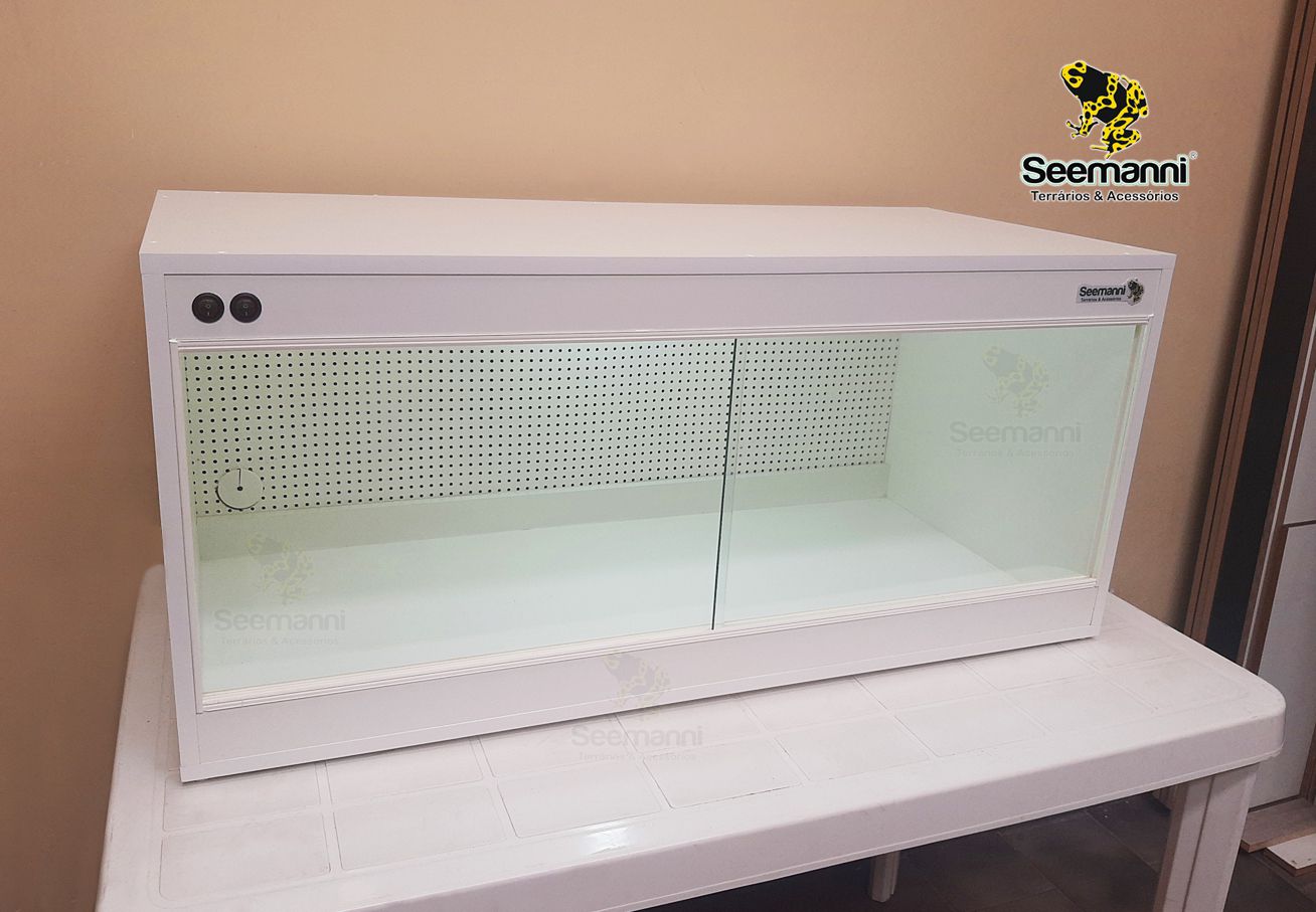 1- Terrário branco, 120x50x50cm ( Comprimento x Largura x Altura ).